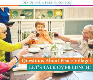 Enjoy a delicious meal with some of our residents and hear first hand what they love about living at Peace Village! You will have the opportunity to ask a resident anything to ease your mind. Our residents look forward to meeting each of you in a casual environment. Sign up today by calling us, space is limited so don’t delay. More Than a Senior Living Community, come and experience the Peace Village difference today!